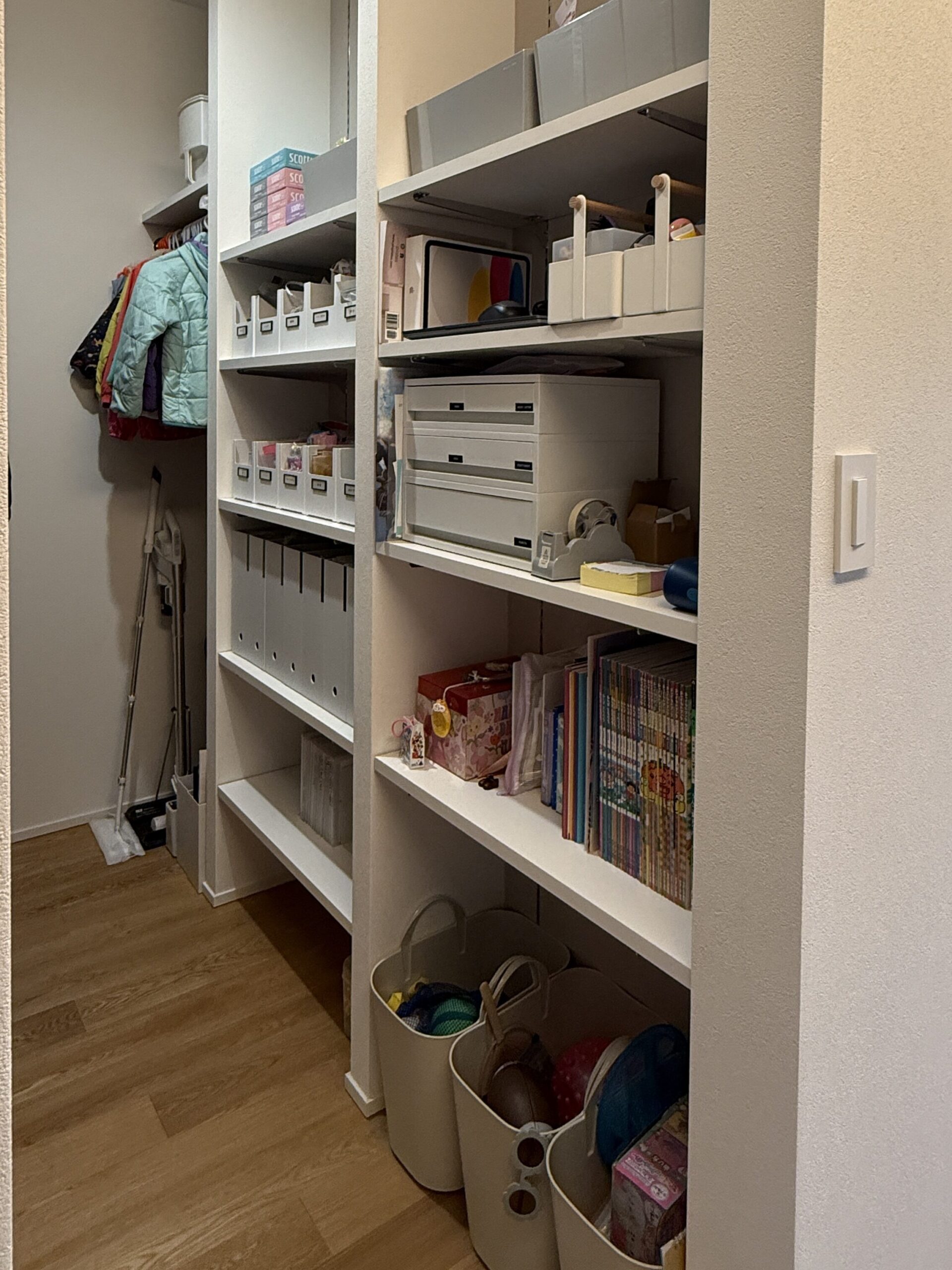 →小さいお子様でも片付けやすい高さと動線に配慮。絵本・おもちゃ・学用品の“定位置”を明確化。
