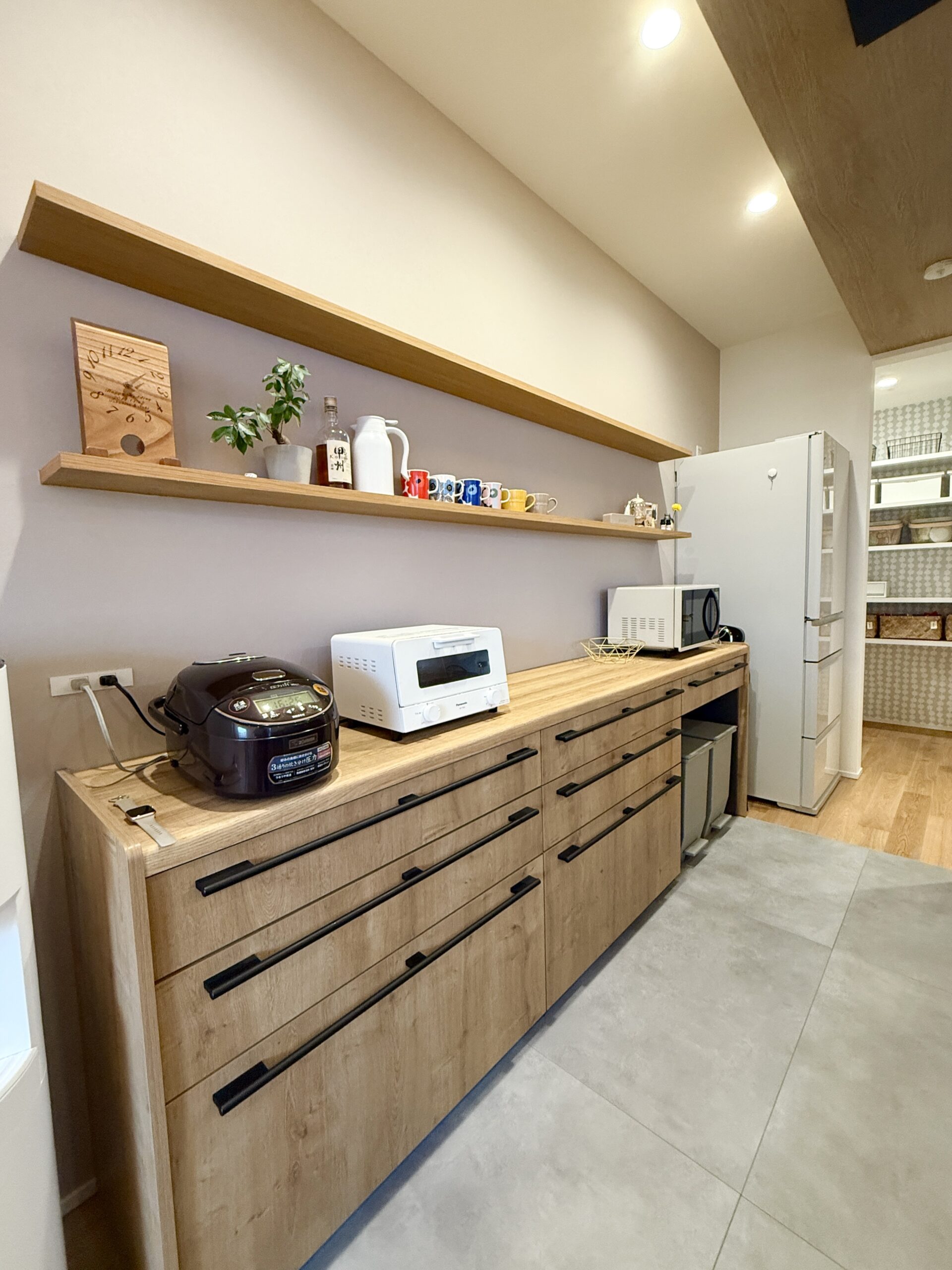 さらに、家事動線も整えて、くつろぎと使いやすさを両立させたいという思いから、設計段階から収納計画のご相談・ご依頼をいただきました。